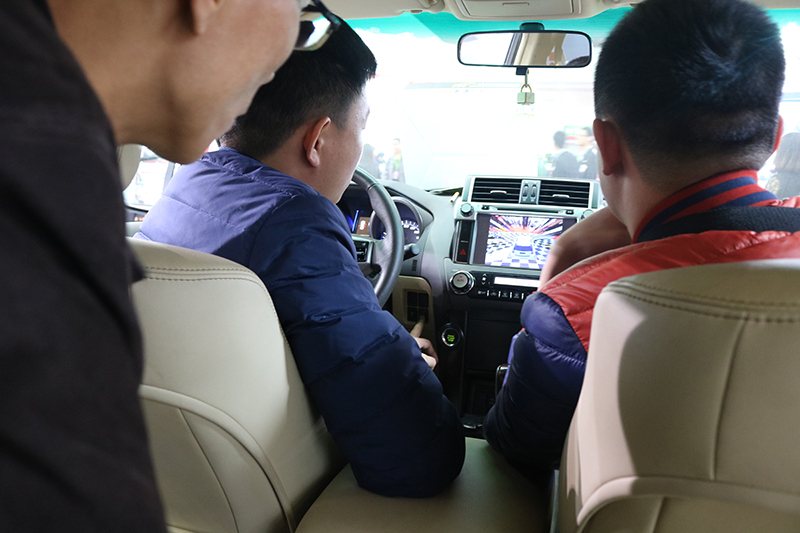 道可視這次展會主推的超清360度全景影像系統,其清晰度達到1080P。不僅僅是清晰度的提升,更解決了因為夜視能力不足而困擾車主的夜間泊車、倒車難題;四路攝像頭實時錄像,智能震動鎖定技術,3D全景泊車,24小時不間斷泊車監控等功能吸引了一大批客商的駐足參觀,在展車體驗過程中對我們人性化的UI交互設計和便捷的功能操作贊賞有加。