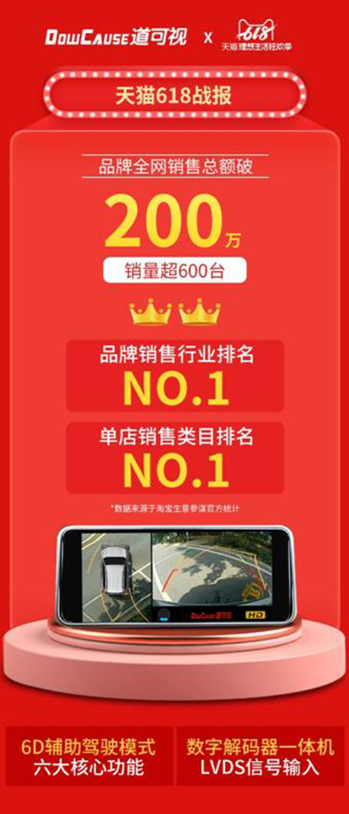 如今在2019年這場618年中大促戰役中,根據淘寶生意參謀官方統計:道可視品牌全網銷售總額破200萬!銷量超600臺!