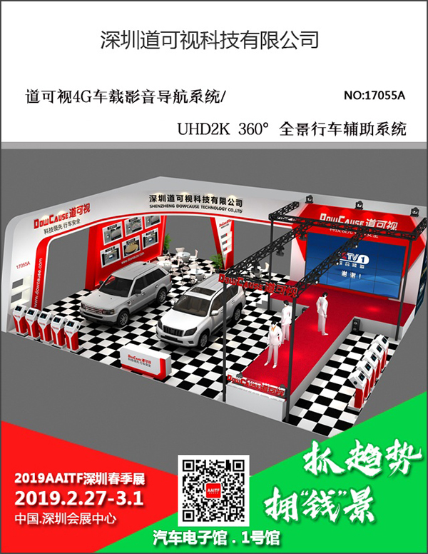 值此辭舊迎新、2019新年開春之際,道可視將攜旗下道可視4G車載影音導航系統、UHD2K 360°全景行車輔助系統等360°全景產品,參展將于2019年2月27日~3月1日,在深圳會展中心舉辦的2019AAITF深圳春季展!(以下簡稱深圳春季展)