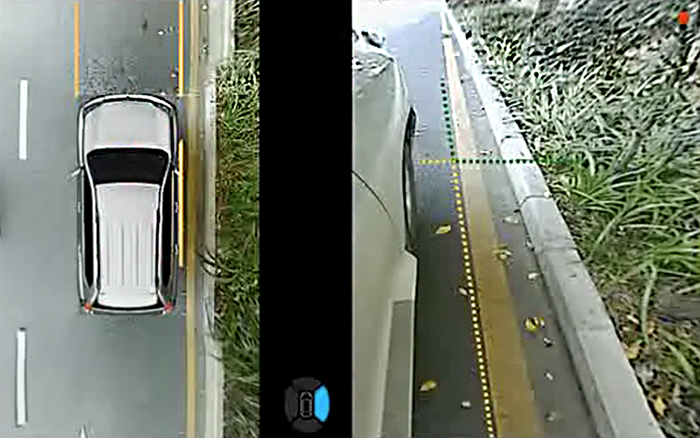 針對這一場景,道可視的“停靠路崖模式”在倒車檔模式下開啟雙閃時,會將車身兩側(整個車身、前后輪、踏板等)同時顯示,以這種近場垂直的鳥瞰圖顯示方式,配合安全參考線(與車身距離為20CM),有效的解決了停靠路崖時可能對輪胎及輪轂造成刮傷的問題。