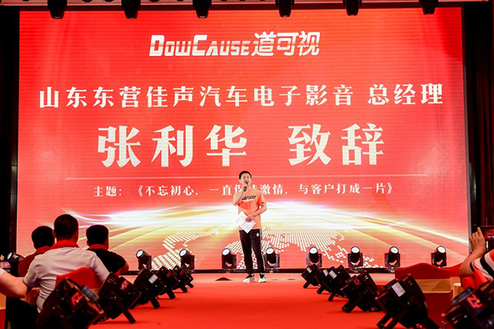 山東東營佳聲汽車電子影音總經理張利華同樣作為優秀代理商上臺發言,帶來“不忘初心,一直保持激情,與客戶打成一片”的主題分享。
