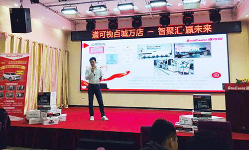 在隨后的活動中,道可視大區經理雷玉杰就360°全景的安裝、售后等問題,將智慧聯盟店的招商政策進行了詳細講解。